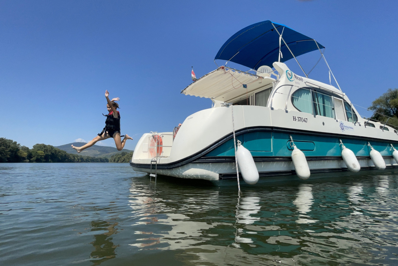 A folyót most egy más szemszögből ismertük meg: a Fecske segítségével azon töltöttük a napokat, a folyón feküdtünk le, ébredtünk fel, reggel a hajó teraszán szürcsöltük a kotyogós kávénkat. Pecáztunk, és a legjobb, hogy ott álltunk meg pancsolni, ahol és amikor csak akartunk. Nem zavart senki meg. Leírhatatlan élmény!